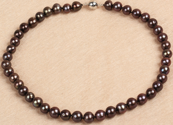 This rich chocolate-brown freshwater pearl strand is a beautiful standout piece. The pearls are a generous 10–11 mm in size, giving the necklace a bold, elegant look. Each pearl has its own natural imperfections, which add to the character and organic feel of the piece.
