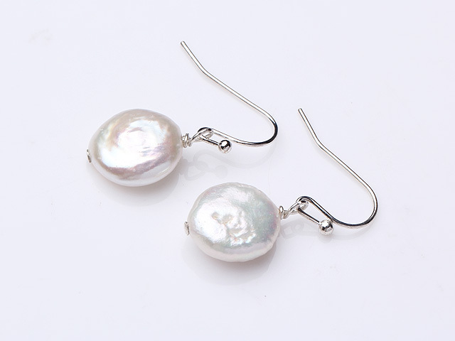 These gorgeous drop earrings feature freshwater button pearls in a classic, slightly flattened coin shape. Each pearl measures approximately 10mm and displays a smooth, high-luster surface with a soft white body colour and delicate iridescent pink and silver overtones. Suspended from polished 925 sterling silver French hooks, they offer just the right amount of movement and sophistication for day-to-night wear.