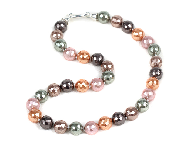 Add a pop of colour and elegance to any outfit with this stunning multicolour shell pearl necklace. Featuring beautifully faceted pearls, each bead catches the light to create a subtle sparkle and a modern, textured look.